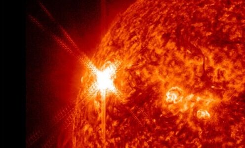 The flare originated in a humongous sunspot that was sighted earlier this week, which is one of the largest sunspots seen in years. The event began at 4:27 p.m. ET (2027 GMT).