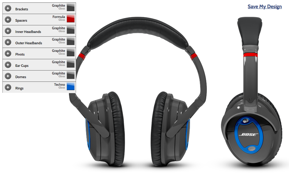 QC15 headphones now feature a brand new look—yours. Show off your school colors, team pride or virtually any color combination with your own headphone design, Customized with ColorWare. Choose from 46 brilliant colors to customize 8 separate headphone elements in matte or gloss finish.