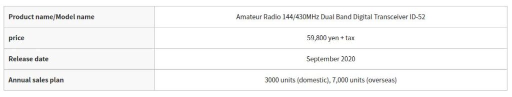 Icom Co., Ltd. (Headquarters: Hirano-ku, Osaka; President: Masataka Harima) has released a 144/430MHz dual-band digital transceiver ID-52 that supports the amateur radio digital communication standard D-STAR® recommended by JARL in 2020. New release in September.