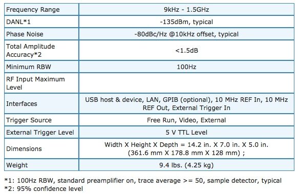 • 100 Hz Minimum Resolution Bandwidth (RBW)