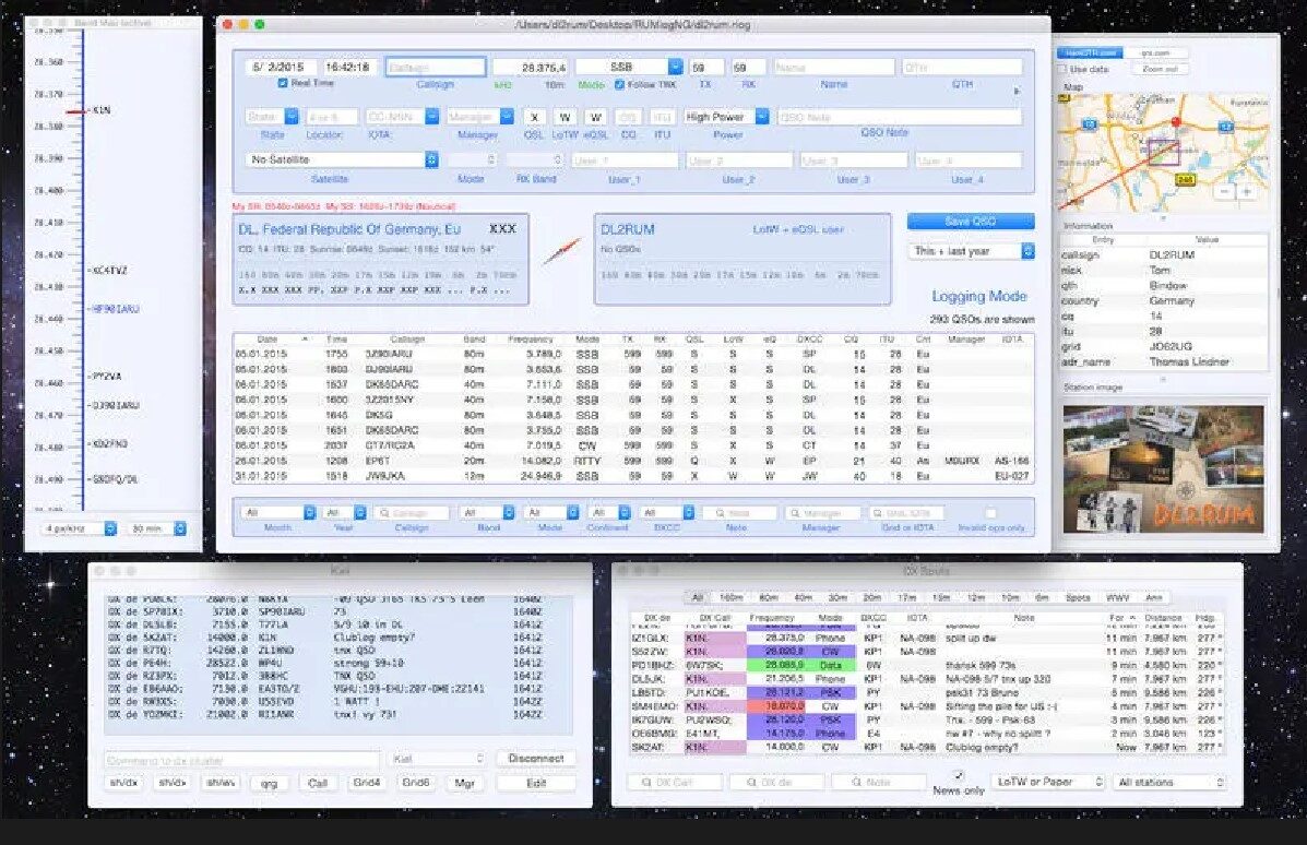 RUMlogNG is a HAM radio logging, QSL handling and printing tool, especially made for the short wave DXer, made by a DXer. Basic logging features are included for the higher bands up to 1.2 cm and for satellite. RUMlogNG can handle an unlimited number of logs and an unlimited number of QSOs per log. Clublog data are used for automatic DXCC recognition.