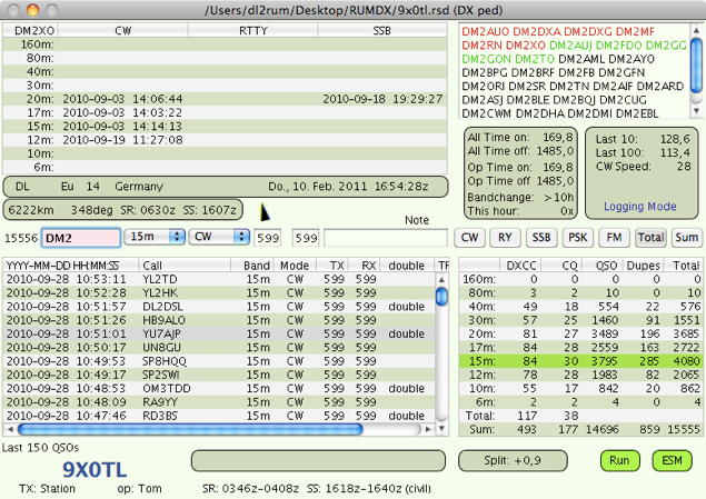 RUMped is a dx-pedition and contest logging tool for short wave for the Mac. Currently RUMped supports a DX-pedition mode, major contests and a general contest mode for unsupported contests. Further you can create your own contest rules.