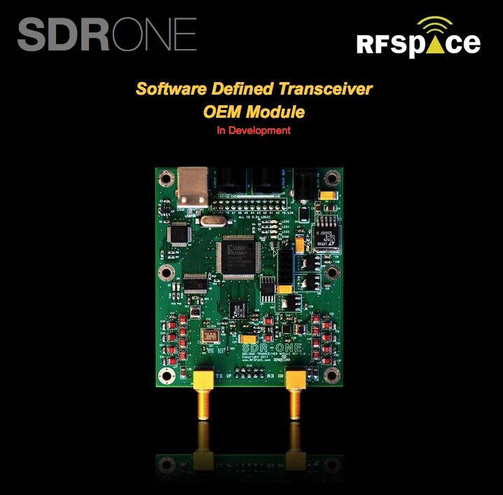 The SDR-ONE is a low cost, high performance transmit / receive module for experimentation and integration into products. The module can be used stand alone or plugged into other products. It offer s very high performance with the use of 14 bit ADC/DACs. The SDR-ONE RX/TX module offers 48,96 and 192 KHz transmit and receive bandwidths over I2S and Optical Audio (S/PDIF). Digital audio ports use TOSLINK in/out interface. The SDR-ONE sets the RX sample rate of the sound-card . In TX, the SDR-ONE resamples the incoming data to 192 KHz synchronous to the RF DAC with a high performance asynchronous sample rate converter algorithm. The FPGA and Flash memory can be reprogrammed over the built in USB port for many other custom applications. The FPGA UCF file and information on the ports is supplied for those willing to write their own code.