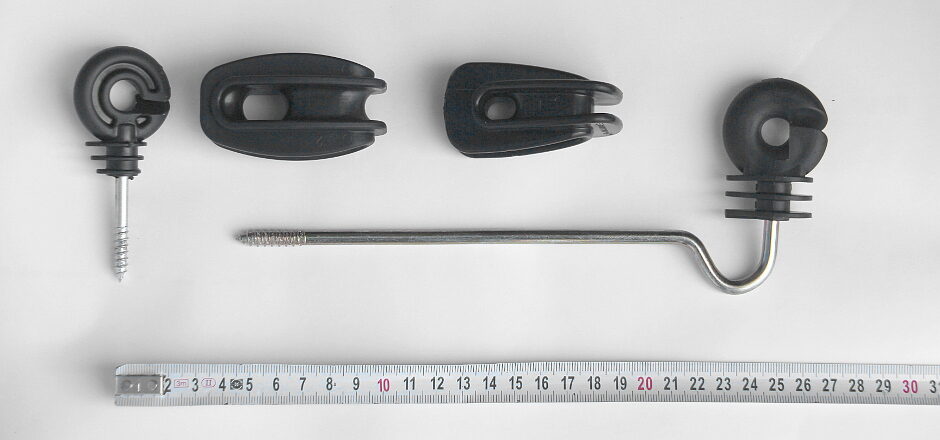 There are the screw insulators which we use at the OL7M contest station to build the unidirectional and bidirectional BVRG. It is suitable to be mounted on the poles and posts, or directly into the trees themselves. Furthermore, the plastic antenna insulators which can be used for the dipoles and wire antennas.
