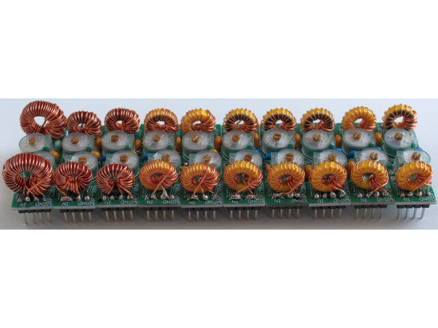 This item is a set of 10 band pass filters (BPF), one for each of the HF bands 160, 80, 60, 40, 30, 20, 17, 15, 12 and 10m. The filters are designed for receiver input filtering and use the popular double-tuned-circuit which is reliable and easy to build, without needing access to any special equipment. The kits use a high-quality double-sided PCB with silk-screen, solder-mask and through-hole plating. The capacitors supplied with the kit are high-quality low loss RF ceramics of the C0G type (a.k.a. NP0 – near-zero temperature coefficient).