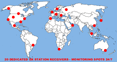Using our own dedicated network of global ‘skimmer’ receivers, we constantly monitor and log the reception of amateur radio stations on the HF and VHF bands.