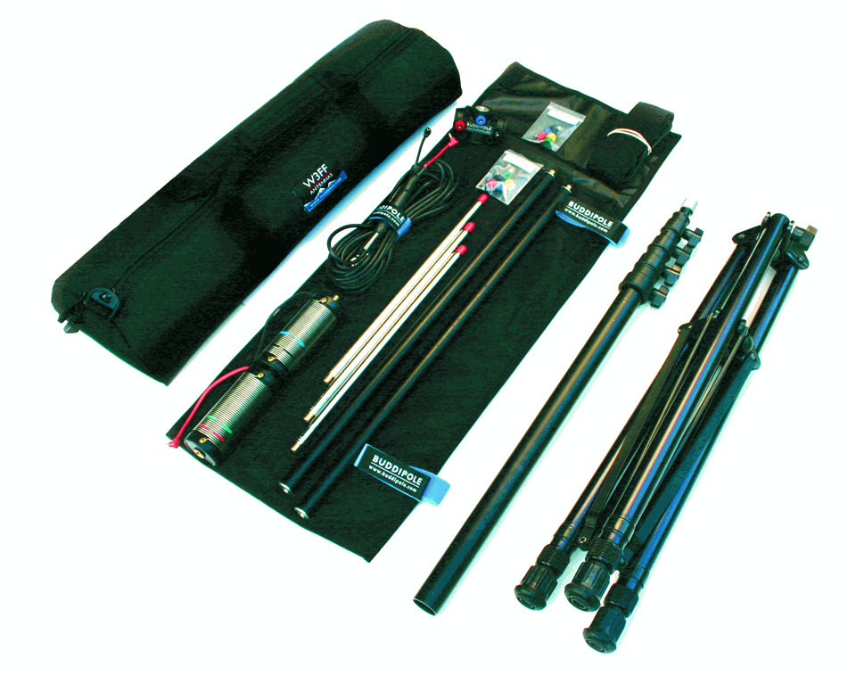 The Buddipole Deluxe Package includes everything you need for setting up an efficient portable antenna solution anywhere in the world in just a few minutes. The package includes the following custom components which all fit into the padded cordura nylon custom-carrying bag: