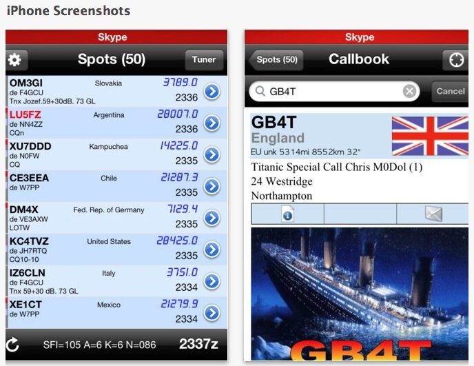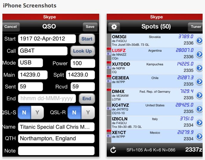 • Log contacts, including your current location (perfect when operating portable!)