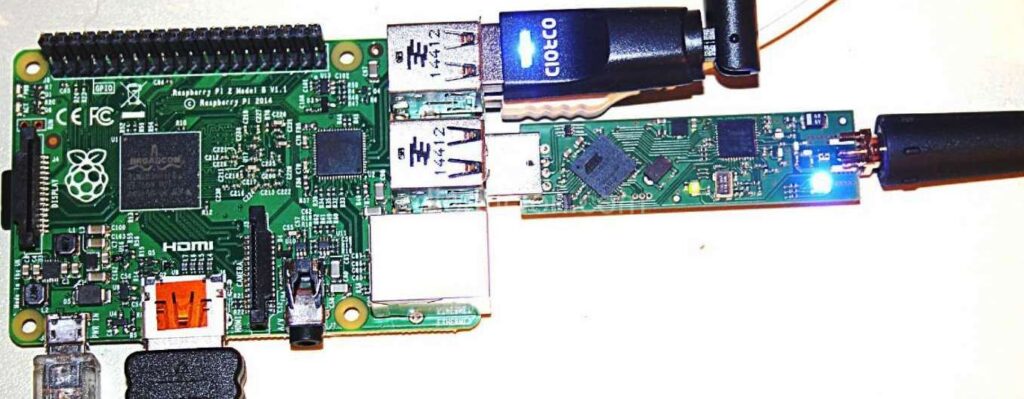 This picture shows a DV4mini connected to a Raspberry PI 2 Mod. B: