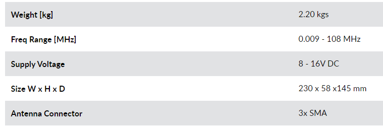 The FDM-S3 works as a direct sampling SDR with a variable sampling rate of maximum 122.8 MHz. The reception range is from 9 kHz to 108 MHz, an optional downconverter has been announced for even higher frequencies.