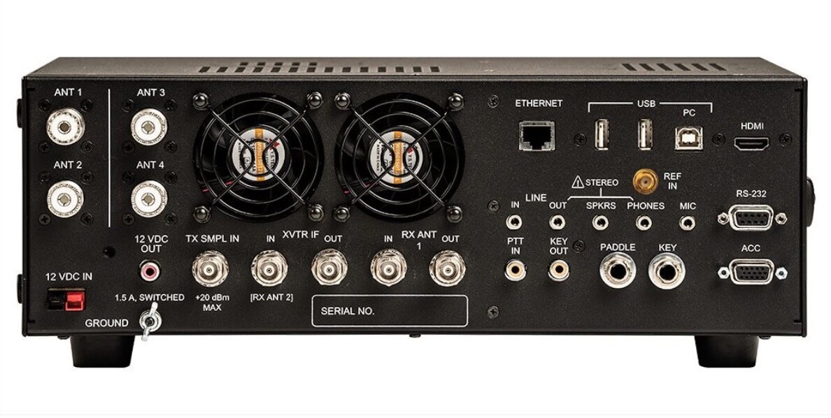 I/O: USB-A x3, USB-B (two virtual com ports + audio), RS232 (DE9), Ethernet, HDMI. front/rear mic, front/rear phones, LINE in/out, speakers, PTT in, KEY out, paddle, key, ACC,12 V out.