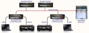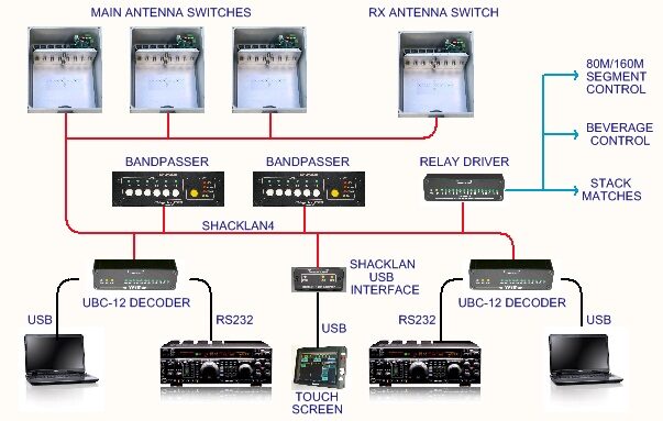 ShackLan4 is a simple yet powerful and flexible control system designed specifically for automating antenna swithing and station functions. The system is easily expandable and can be used in a simple station consisting of a single radio with a handful of antennas all the way up to multi-radio, multi-tower contest stations.