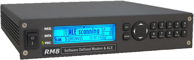 Offering a wide range of standards-based waveforms and protocols, the RM8 software defined modem with 2nd Generation (2G) Automatic Link Establishment (ALE) provides interoperable data modem and link setup in a standalone unit for strategic and maritime data communications. The 2G ALE Controller is a software option for the RM8, and can be combined with LF and HF modem software packages, selected by an activation key.