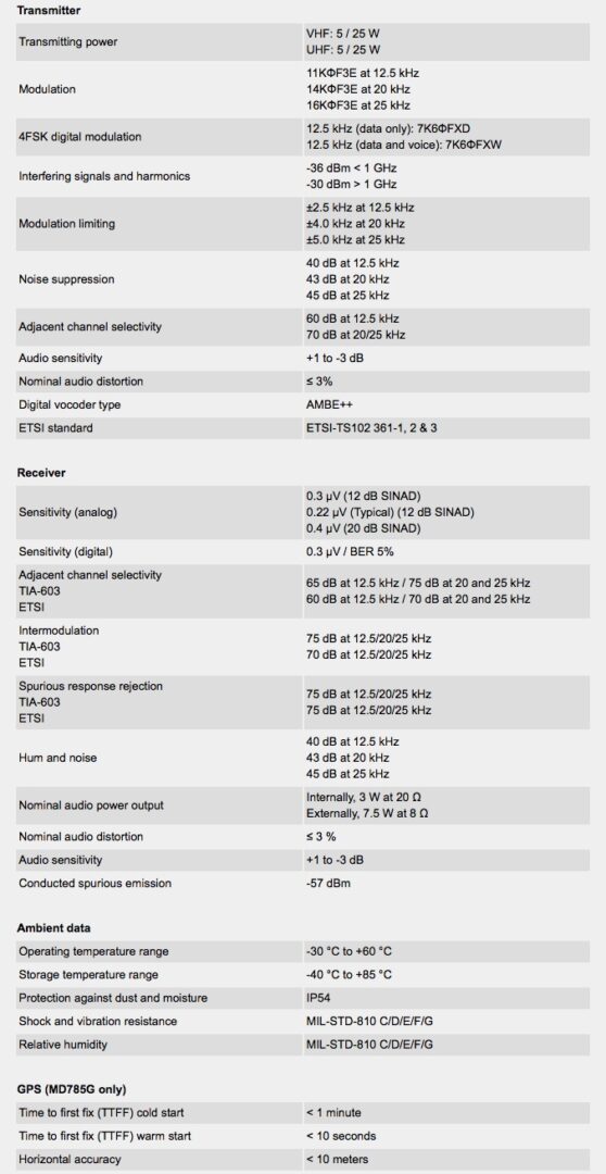 The MD785/MD785G features an analogue as well as a digital mode and is compatible with the currently used analogue systems, thereby simplifying your transition into the digital age.