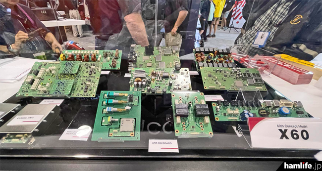 Ccording to information from amateur radio operators who visited the site, a large number of amateur radio fans were waiting in front of the Icom booth waiting for the announcement of new models. When Icom America staff removed the black veil at 9:30 local time, an information plate reading “60th Concept Model X60” and the main board and units of “X60” housed in an acrylic case were revealed. Although no detailed explanation was given, I could imagine from the contents of the board on display that it was a large HF machine capable of receiving two waves simultaneously. It is unthinkable that they would make this many boards just to display a concept model, and it is thought that a new HF machine (IC-7860?) to commemorate the 60th anniversary of Icom will be released in some form in the future.
