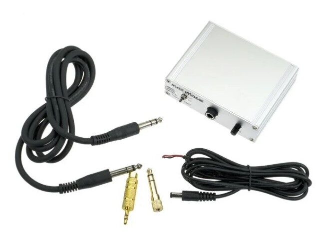 Before you put the IKOS IMPULSE into operation, take a look at the first steps in the operating instructions. The package includes not only the IKOS IMPULSE itself, but also everything you need to get started: 2x audio adapters, 1x audio cable, 1x manual in English and German, and 1x power cable.