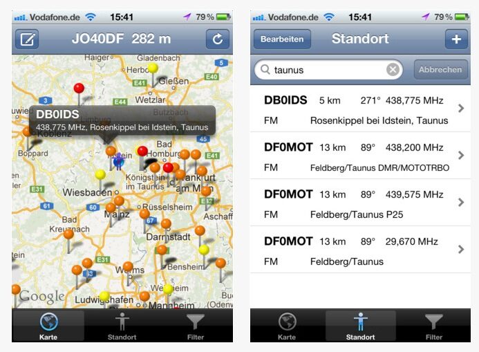 Relais ist eine Anwendung f?r‘s iPhone, iPod und dem iPod. Es zeigt dir die n?chst gelegenen Relaisfunkstellen an. Die Benutzer ver?nderliche Datenbank umfasst ?ber 3000 Eintr?ge von europ?ischen FM und D-STAR Relais auf dem 10m, 6m, 2m, 70cm und 23cm Band (DL, OE, G, F, I, 9H, C3, CU2, EA, EA8, EI, ER, ES, HB9, HA, LA, LX, LY, OK, OM, ON, OZ, PA, S5, SM, SP, TA, TF, YL, YO)