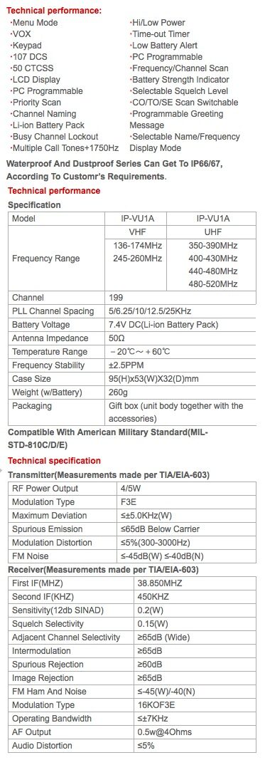 New Chinese VHF/UHF Dual Band Hand Held Radio Station “IP-VU1A”