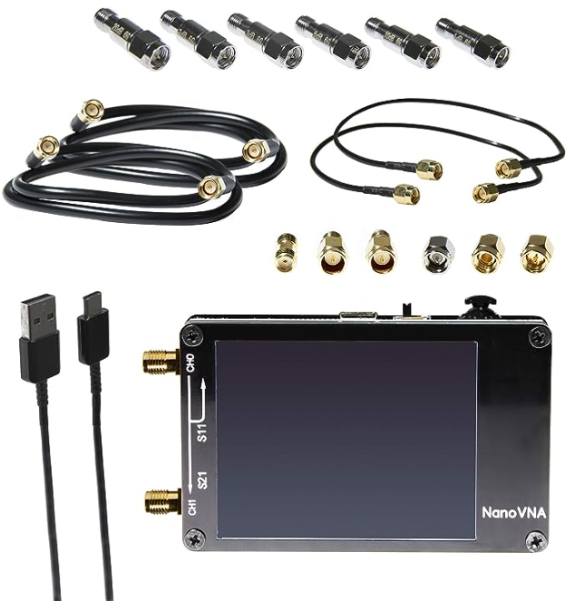 NanoVNA has a 2.8 inch TFT touch screen with a simple interface that allows S parameters (S11 and S21) to be measured. SWR, Phase and Smith chart functions.