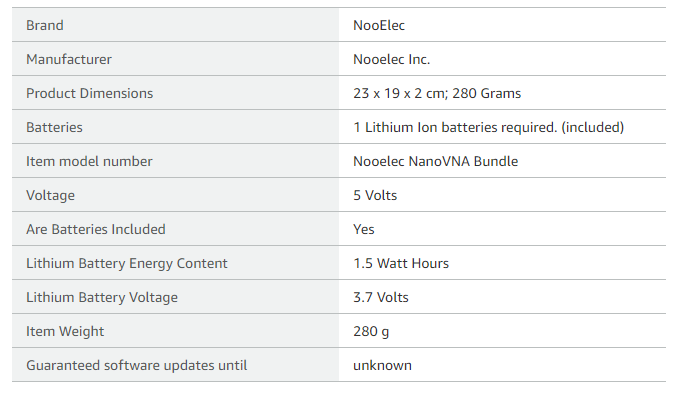 Measuring capacity of at least 50 kHz to 900 MHz and beyond this range with suitable custom firmware (note that the technical data may be lower outside the intended operating frequencies). The frequency accuracy is 0.5ppm or better, RF output power is -13dBm and SWR <1.1.