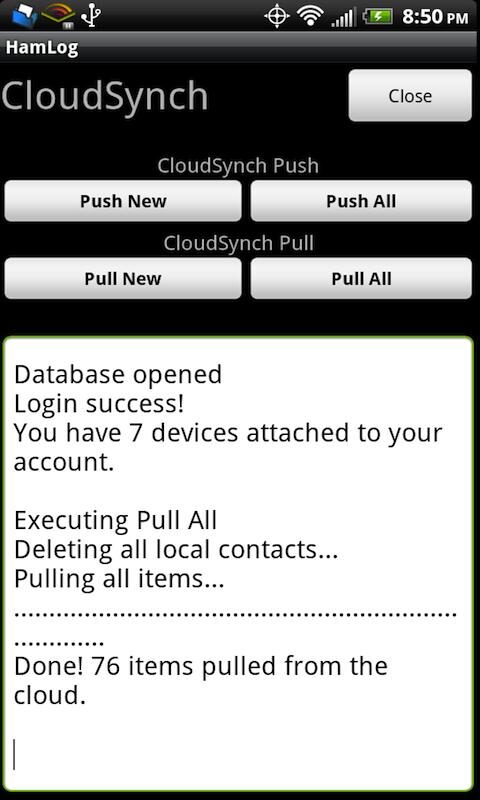 The mobile app HamLog has the ability to synchronize (pull/push) to the cloud to ensure you’re always carrying the most up-to-date log at all times. Imagine bringing your iPad out into the field and logging a few contacts. Then, once you have Internet access (3G or WLAN), pushing those contacts out to a web-based central repository. Then you grab your phone and pull those logs, or the whole thing, down from that repository. Your log is always up to date.