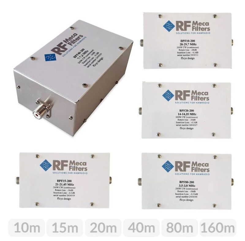 High-quality bandpass filters from the French manufacturer RFMeca in an RF-tight sheet metal housing with SO-239 connectors.