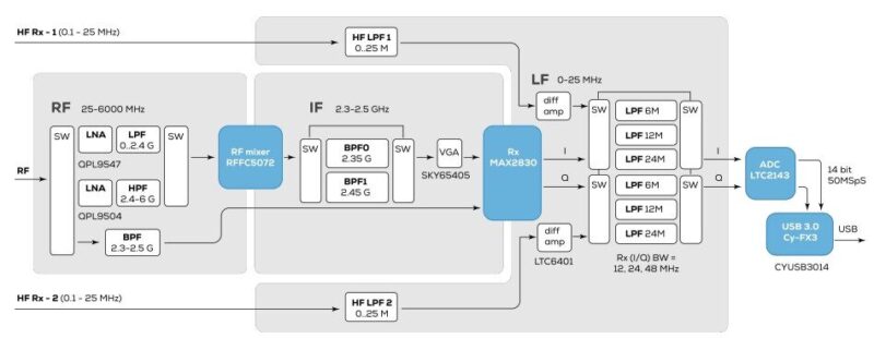- 25 MHz – 6 GHz(double conversion heterodyne)