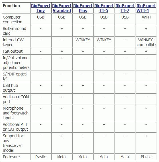 All models contain: Transceiver CAT system, PTT & CW outputs, PTT,CW & CAT activity LEDs.