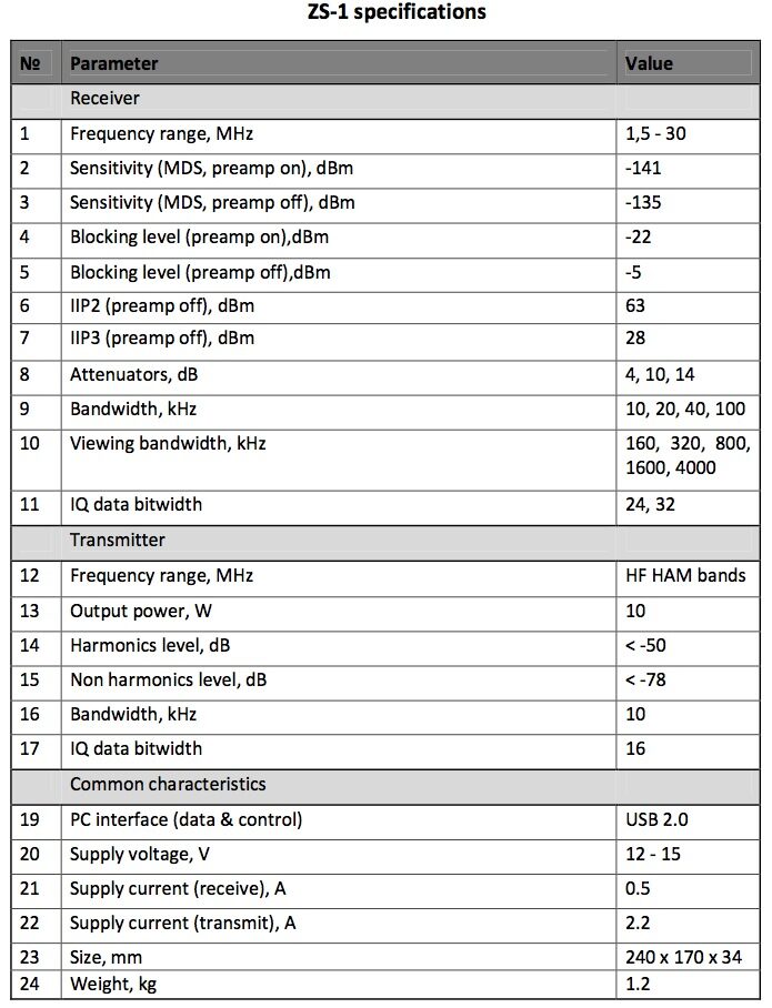 The ZS-1 is a HF all-mode fully software defined amateur radio. It features direct sampling receiver, direct digital synthesis based transmitter and USB 2.0 interface.