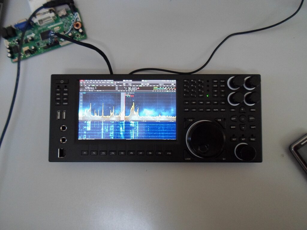 In one box we have : Full PC (Micro-ITX PC, Intel Core i5 CPU, full blown Windows 7 (or Linux Ubuntu)), transceiver’s hardware core based on SunSDR2 transceiver, 125W PA, PA LPF, ATU(option), Antenna switch, GPS receiver(option), WLAN(option), 7” display, Fully reprogrammable front panel (all buttons and all knobs), green highlight of all buttons and a main knob. Also additional HDMI connector for external a big display.