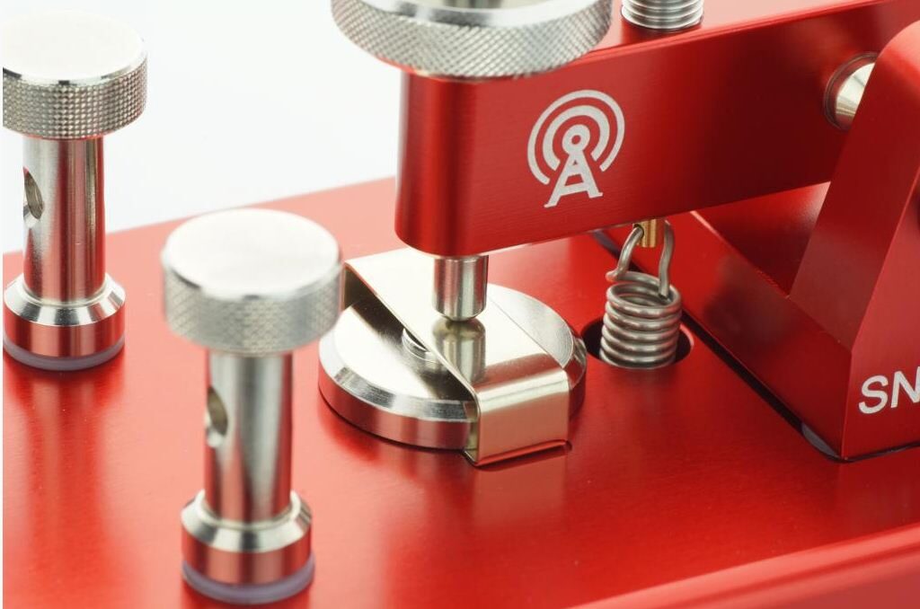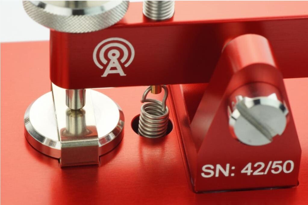 STM-12 FMJ is an extremely high quality full metal version. The key base was milled from a block of aluminum. Block and terminal screws are insulated by nylon pulleys. The F.M.J. Full Metal Jacket brings the classic understanding of a Morse respectively Telegraph key to the point. It impresses not only with its simple appearance, but also has an excellent sense of touch.