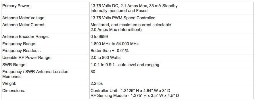 The control unit is an intelligent, microprocessor based, data and Pulse Width Modulated (PWM) Motor Controller that monitors the transmitter frequency and antenna performance, while managing the antenna motor speed and tuning accordingly.