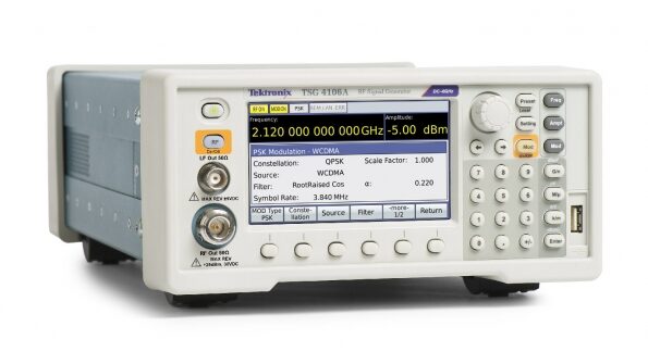 The TSG4100A series of vector signal generators from Tektronix features three models that provide outputs that range from direct current to 2 GHz, 4 GHz, and 6 GHz. These instruments provide spur-free outputs with phase noise of -113 dBc/Hz at 20-kHz offset from a 1-Ghz carrier and a frequency resolution of 1 µHz at any frequency. They exhibit an amplitude accuracy ≤ ±0.30 dB (0 dBm CW signal at 22ºC) from 10 MHz to 6 GHz.