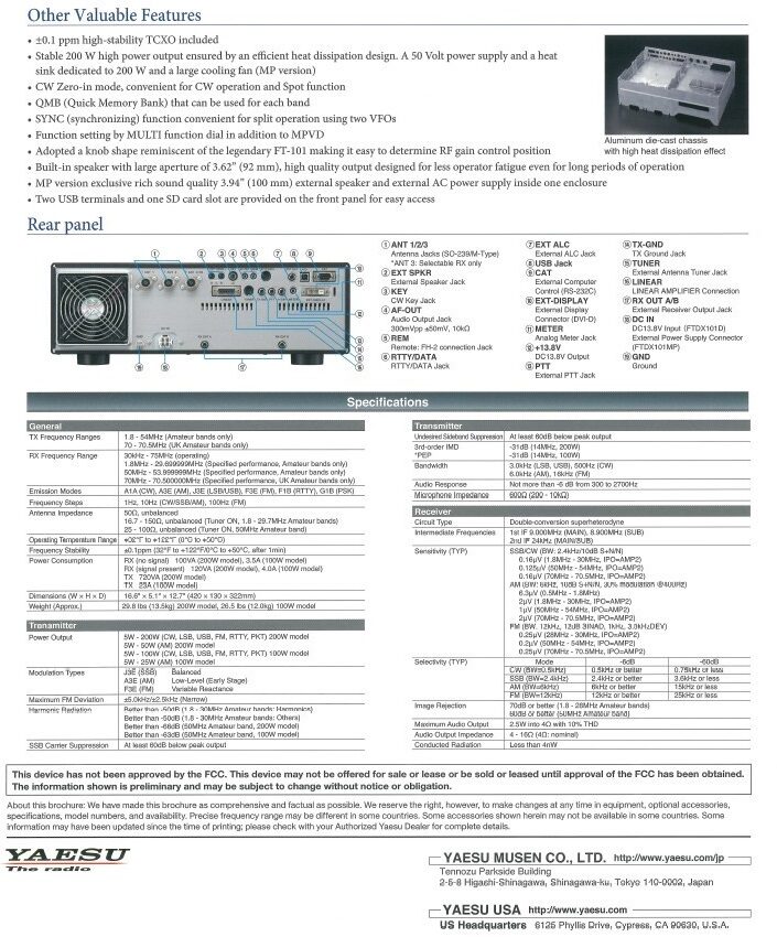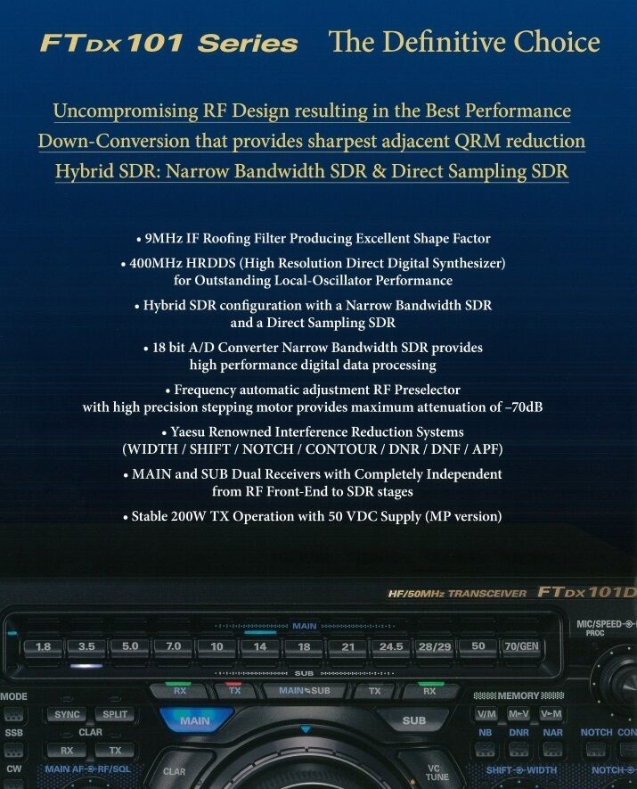 • YAESU High-Class HF/ 50MHz 100W Transceiver