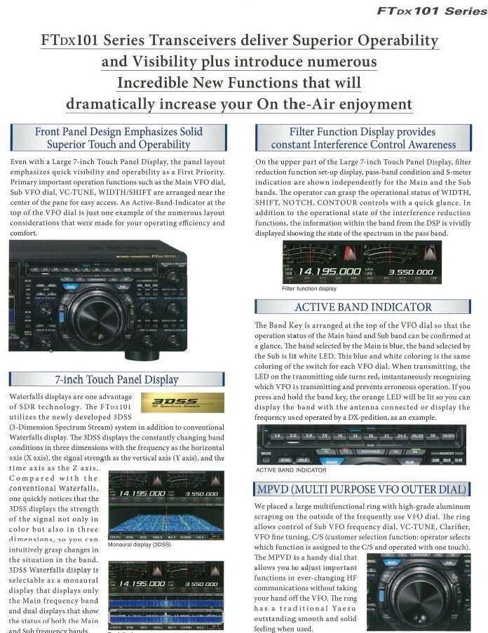 • Independent control of the Main and Sub Bands allows effortless operation for the serious contester needing to move quickly between the amateur bands