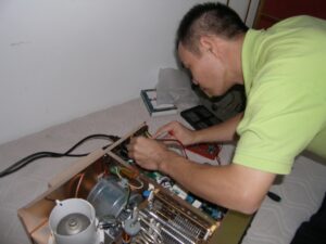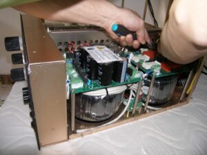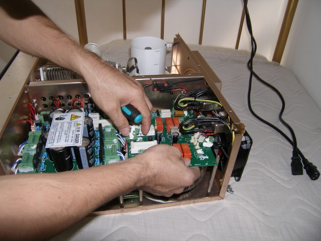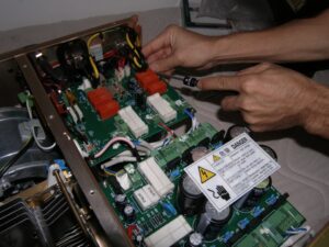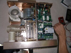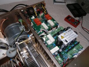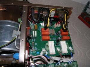 The factory sent a technician to do repairs (board replacement) – see the images of repair work and the components inside the unit. Replacement parts are generally available by mail.