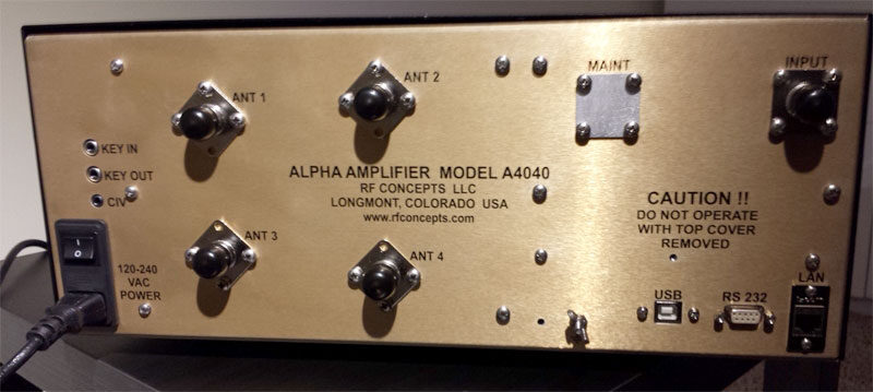 The back panel redesign was driven by the new switch design. It accommodates Bird type QC connectors. If the A4040 is used to transform high SWR at high power different connectors will be required, e.g. 7/16 DIN. You can easily destroy SO239, PL259 connectors with the voltages that could be present at the connector location with this tuner.
