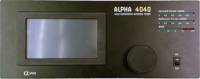 Here’s the unit with redesigned exterior sheet metal, up and running. The Alpha 4040’s enclosure is designed to support the weight of an 80 pound plus amplifier. There are no protruding screw heads, this allows for easy stacking and placement of a whole variety of gear atop the tuner.