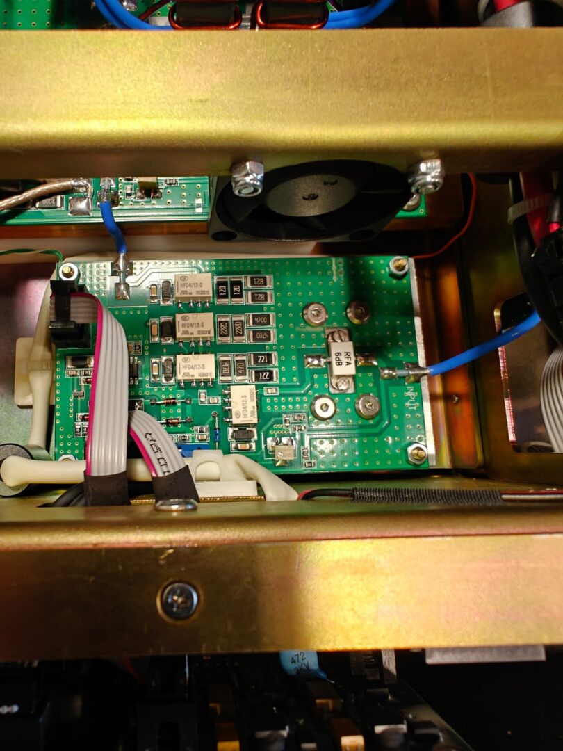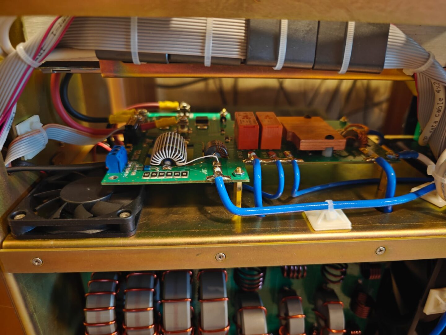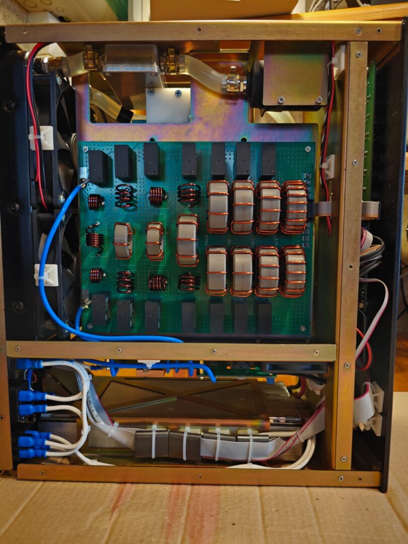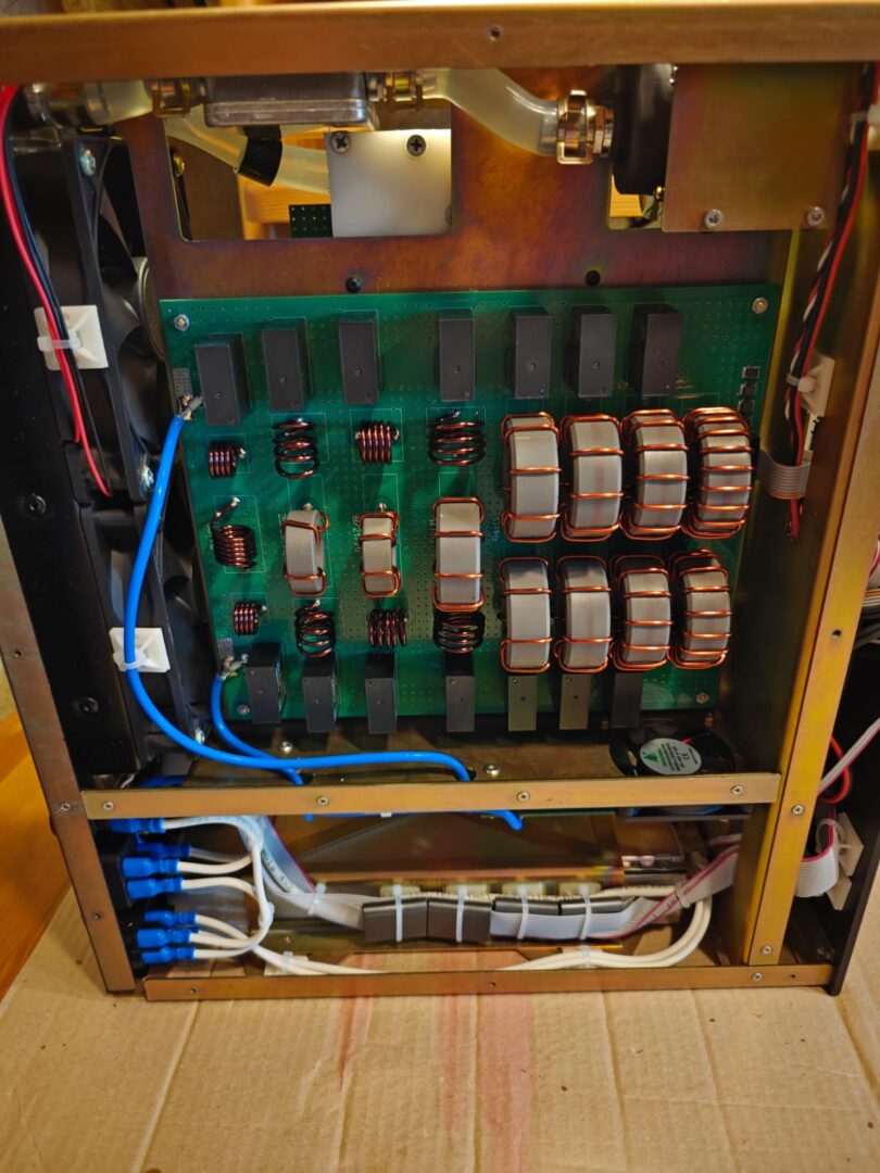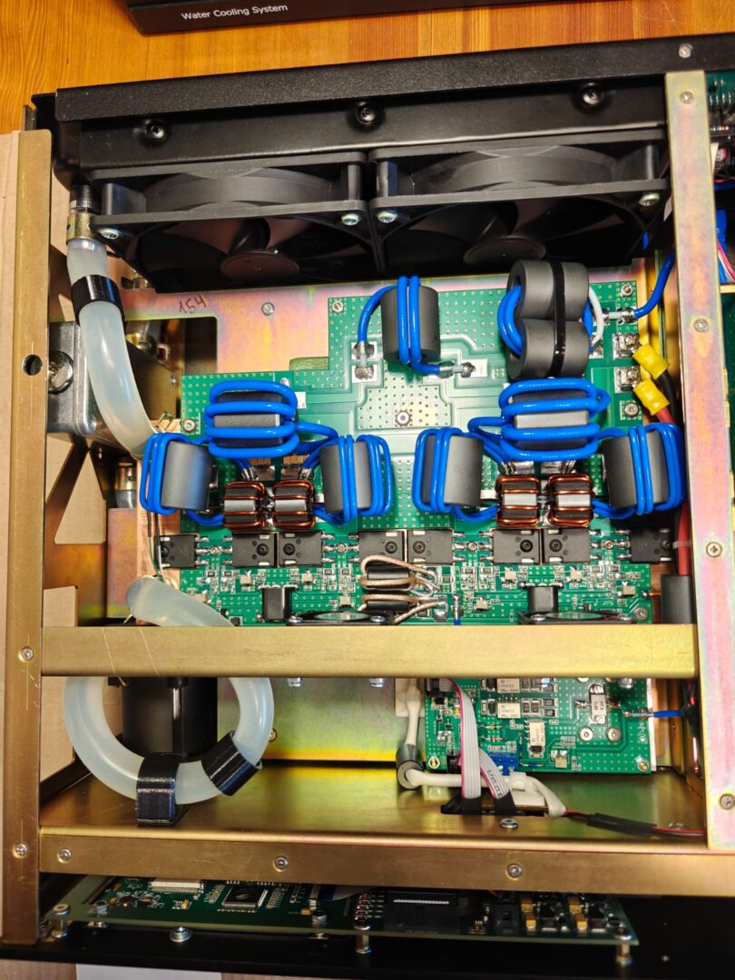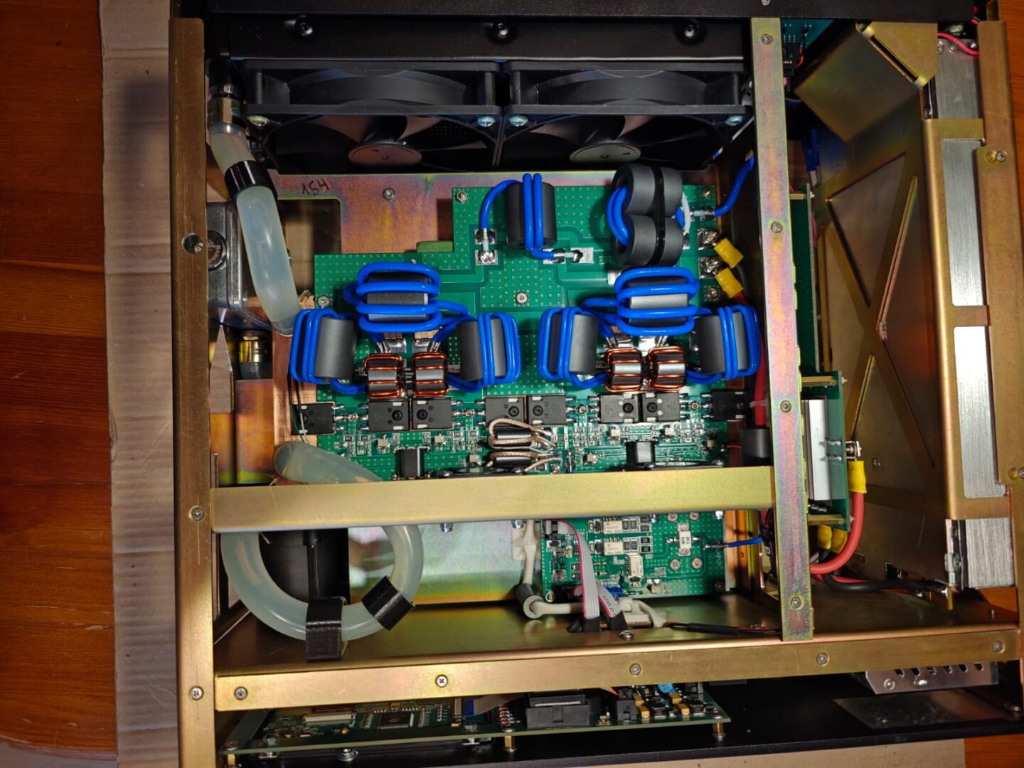 Also used are other types of ferrite coils in the LPF filter, (made in Russia). The water cooling system has been slightly changed. A water pump with a capacity of 600-800 liters per minute was used.