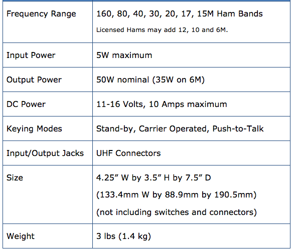 The HR50 interfaces with popular QRP transceivers like the Elecraft KX3 and Flexradio Flex-1500 to provide additional power when necessary or to act as an intermediate amplifier for driving even higher power amps. The HR50 can be fitted with a 0.5W input 5W output driver amplifier that fits inside the case and integrates seamlessly with HR50’s operation allowing it to work with low power SDR kits like the Softrock, Peaberry SDR and others. For CW operators a QSK board is available that replaces the electromechanical relay with fast, silent PIN diode switching.