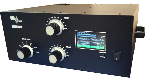 The linear amplifier OM2501HF is a manual tune designed for all short wave amateur bands from 1.8 till 29 MHz (including WARC) and all modes. It is equipped with an one piece of ceramic tetrode FU728F or GU84B.