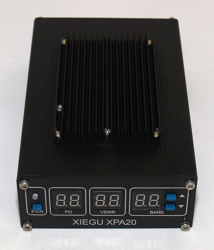 The XPA20 is intended as a companion linear amplifier for the X1M HF QRP transceiver, for those who would like a little more oomph than the X1M’s 5 Watt output. It is rated at 20 Watts maximum output for 5 Watts input and is suitable for both CW and SSB modes.