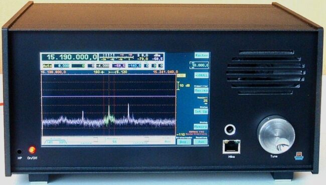 The German “RDR50B” is a radio receiver with transceiver option and based on DSP (two 16-bit ADC). He has a 18 cm (7 “) wide screen with touch panel. The entire unit is operated via this touch panel and the control knob. The desired settings can be tapped directly on the display and then changed…